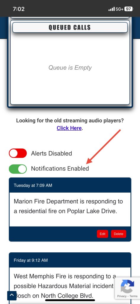If you don’t see the option to enable Notifications above the alert feed (below the player) on your device, it’s because you are not running the app version of the site. Note that enabling Alerts is not the same as enabling Notifications. I’ll admit this is somewhat confusing, and I’m planning on making the whole thing more intuitive and (hopefully) user friendly.